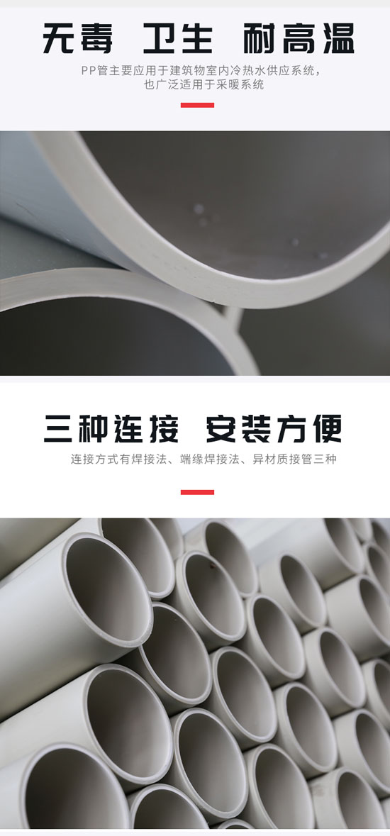 產(chǎn)品賣(mài)點(diǎn):PP管的特點(diǎn)是不銹蝕、耐磨損、不結(jié)垢、減小振動(dòng)和噪聲、防凍裂(超過(guò)-20℃的低溫下pp管產(chǎn)生凍裂,高溫的工作環(huán)境只要超過(guò)70℃產(chǎn)生分解,使用溫度在-20℃到70℃)、防結(jié)露,熱損失少、安裝簡(jiǎn)單、使用壽命長(zhǎng)。